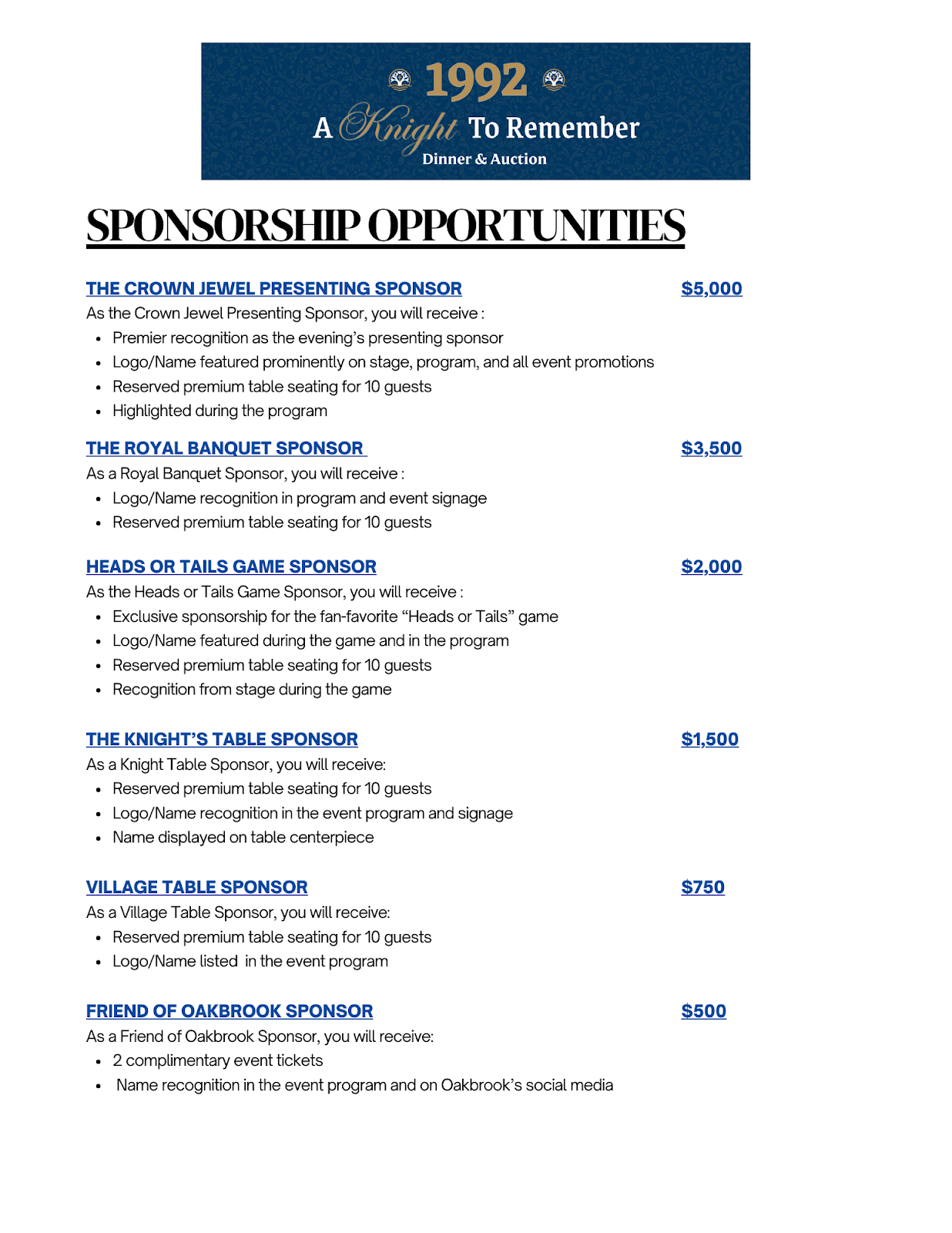 • Sponsor: Partner with us as a Table Sponsor or an Event Sponsor to help underwrite costs and maximize impact.